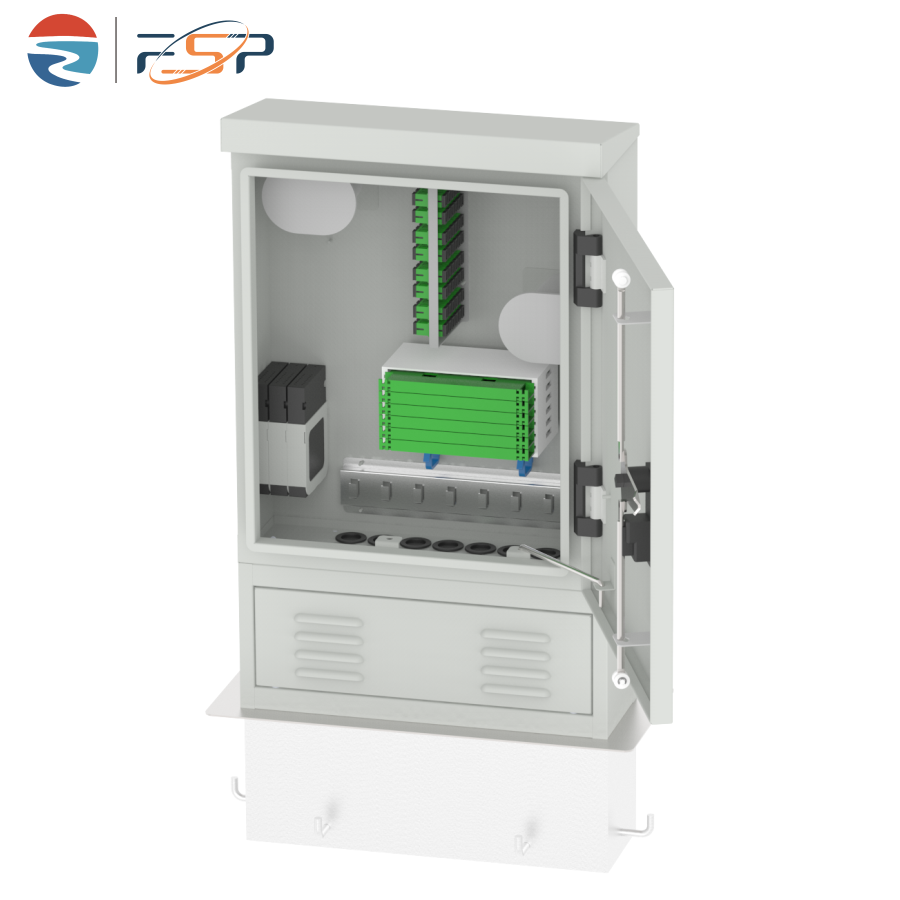 FSP-FDC-48A Fiber Distribution Cabinet is used for connecting, allocation and dispatching of communication optical cables to each optical distribution node, providing safe, reliable and flexible management equipment of optical fiber and cable for telecommunication network.