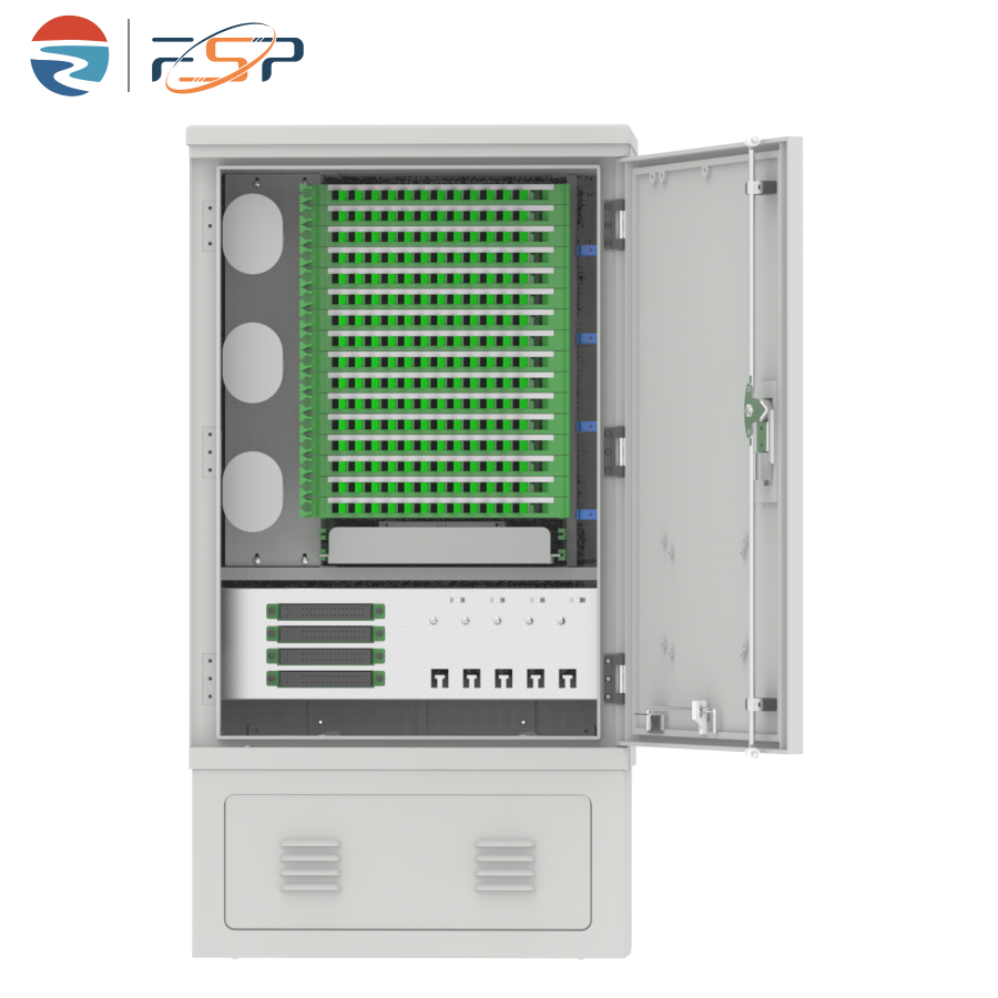 FSP-FDC-144A Fiber Distribution Cabinet is used for connecting, allocation and dispatching of communication optical cables to each optical distribution node, providing safe, reliable and flexible management equipment of optical fiber and cable for telecommunication network.