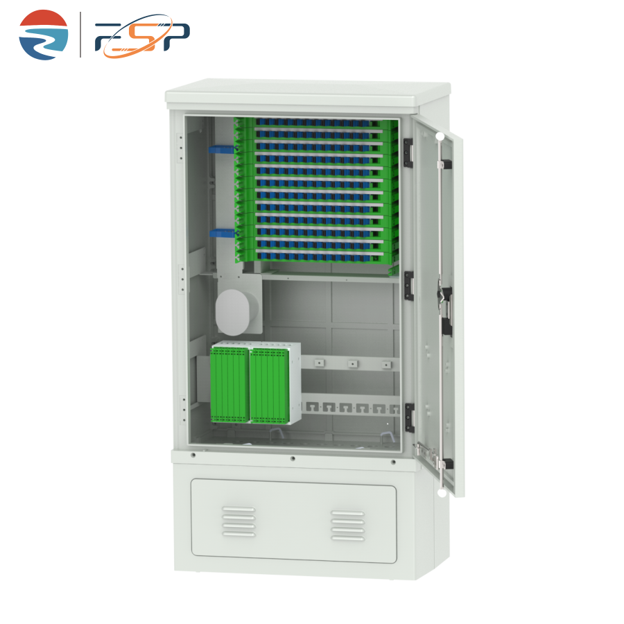 FSP-FDC-144B Fiber Distribution Cabinet is used for connecting, allocation and dispatching of communication optical cables to each optical distribution node, providing safe, reliable and flexible management equipment of optical fiber and cable for telecommunication network.