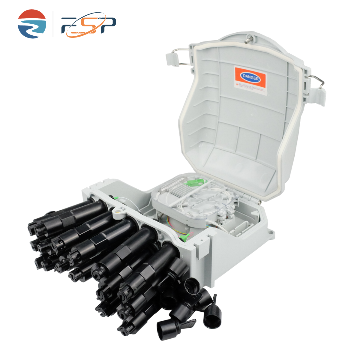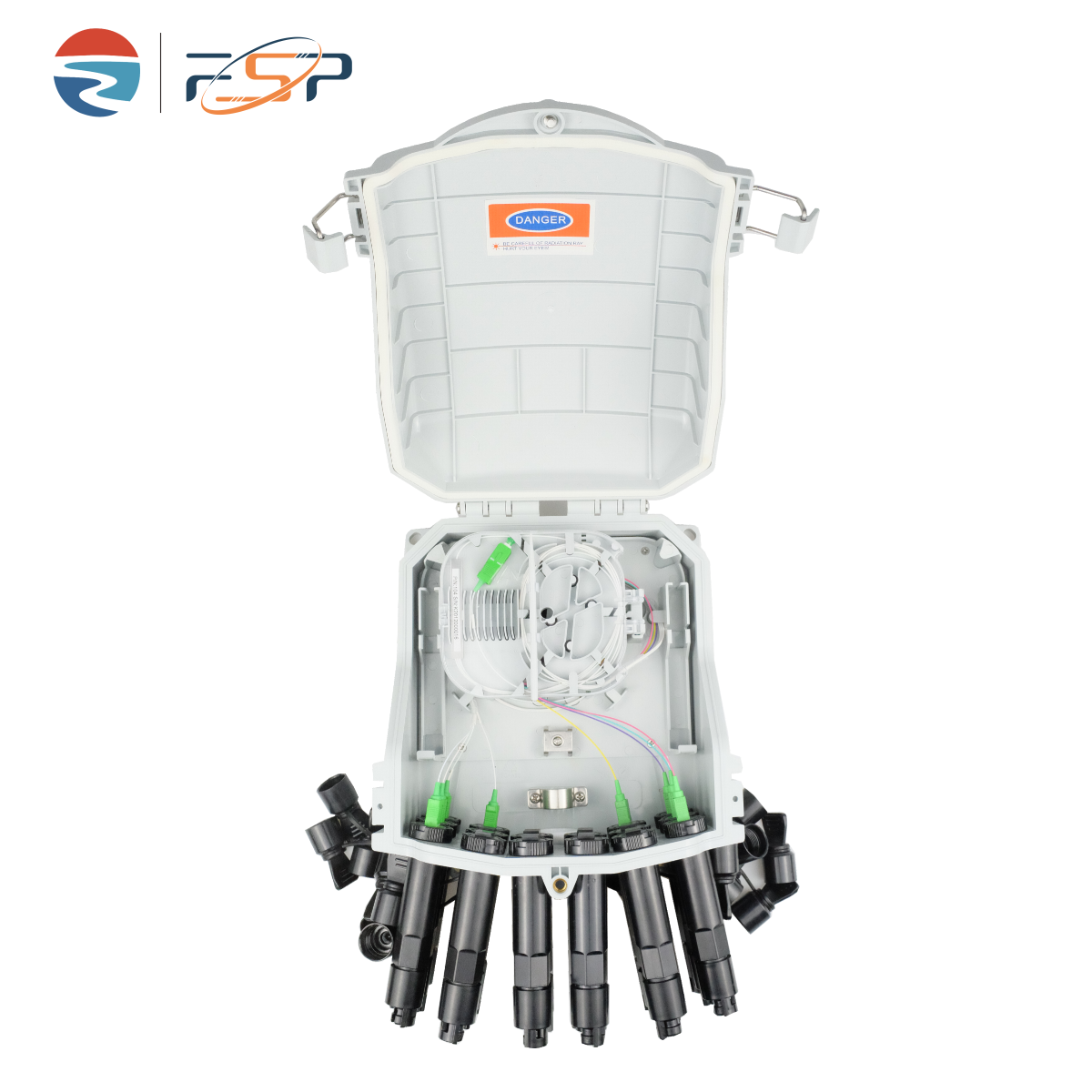 FSP-P-16-A Fiber Distribution Box is used as a termination point for the feeder cable to connect with drop cable in FTTx communication network system. The fiber splicing, splitting, and distribution can be done in this box, and meanwhile it provides solid protection and management for the FTTx network building.