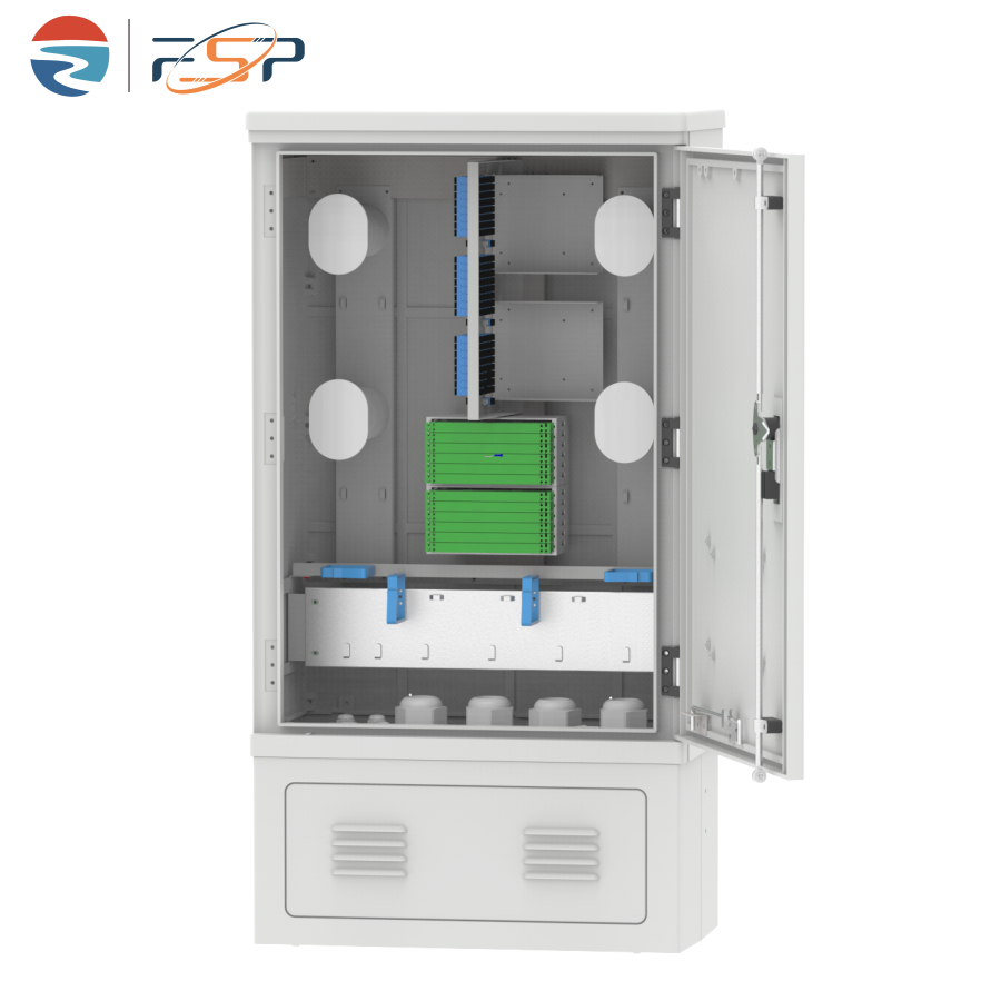 The outdoor Fiber Optic Distribution Cabinet (FSP-FDC-96A) is designed to handle fiber optic cross connections and accommodate passive optical splitters in PON FTTx networks, but can also be used for by pass splicing applications or combinations of the both. The FDC is used as a demarcation point between the feeder network and the distribution network and provides quick and easy incremental installation of distribution cable terminations and fiber optic splitters. It has the functions of fiber cable fixation and protection, optical cable termination function, splitting one core fiber into multiple cores and cross connection. There are also some other tags for this kind of products:FDP fiber optic, fiber distribution cabinet,FTTH cabinet,ODF cabinet, outdoor fiber optic distribution cabinet, outdoor ODF cabinet,fiber distribution hub,fiber cabinet.