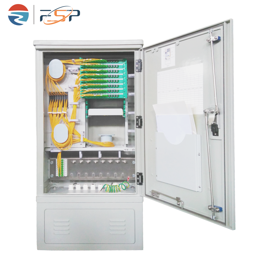 FSP-FDC-144C Fiber Distribution Cabinet is used for connecting, allocation and dispatching of communication optical cables to each optical distribution node, providing safe, reliable and flexible management equipment of optical fiber and cable for telecommunication network.