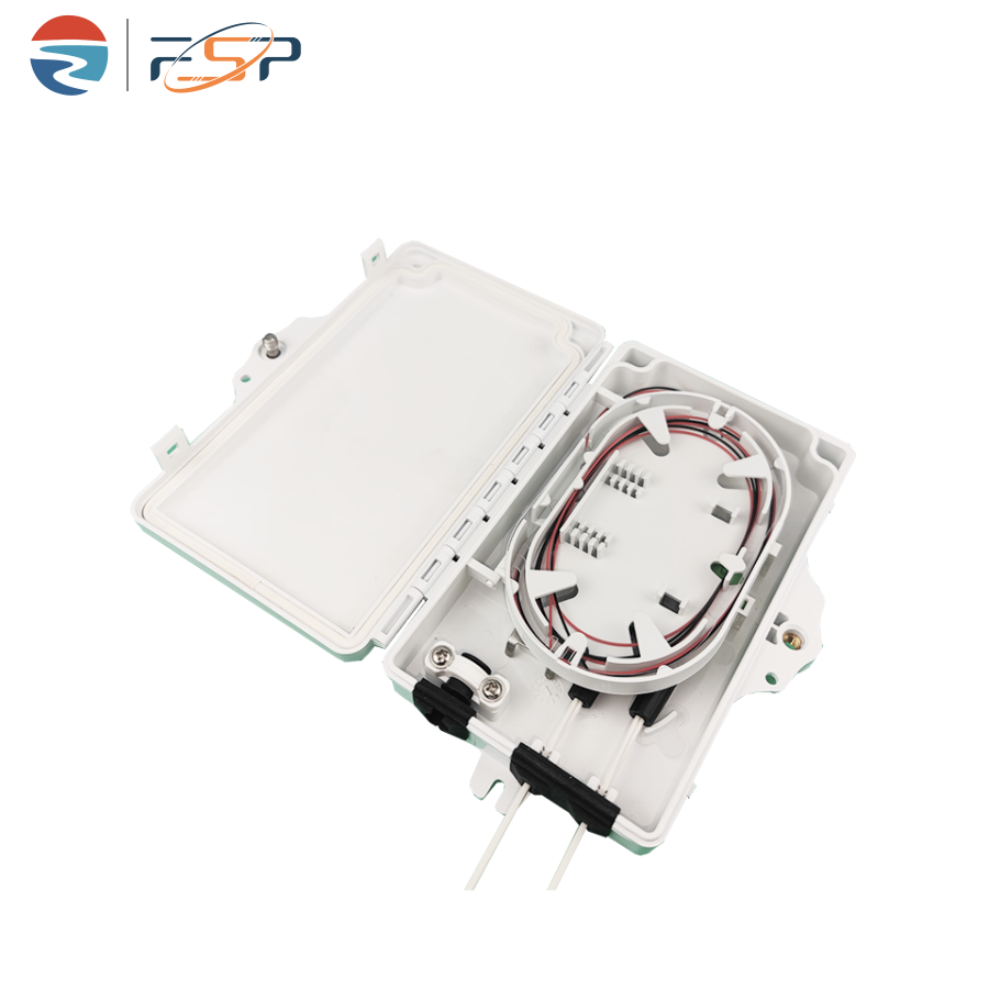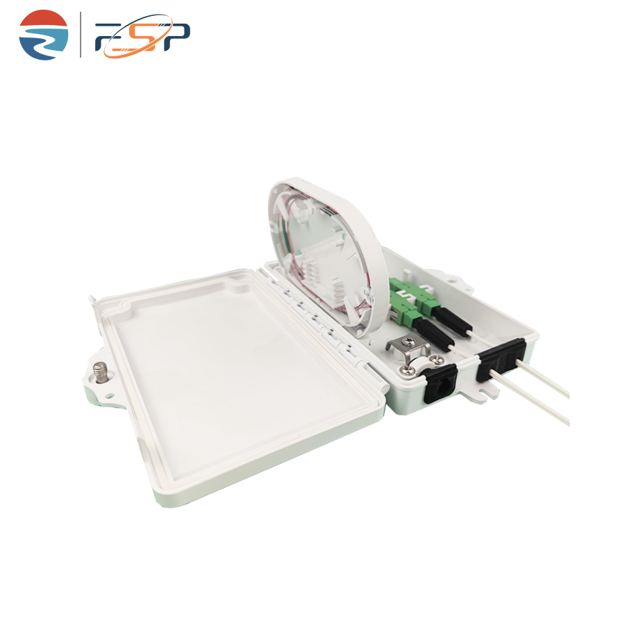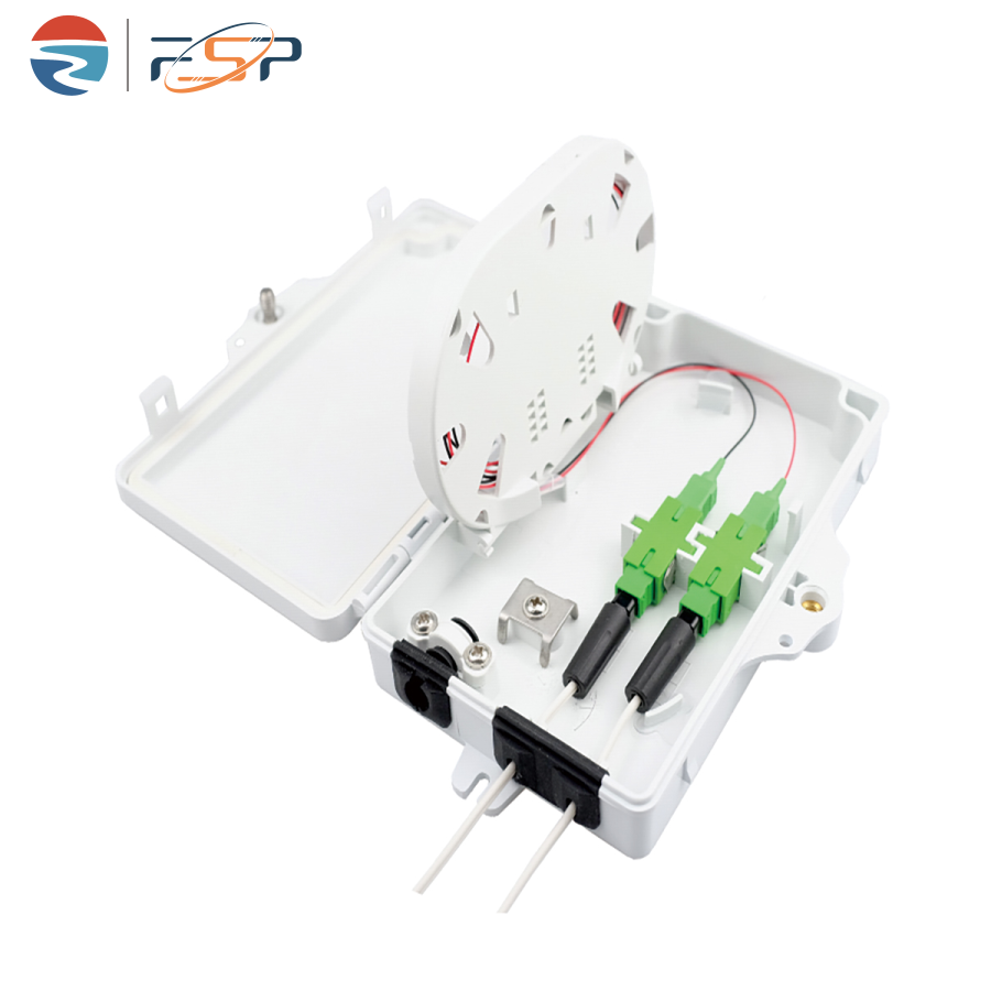 FSP-P-02-A Fiber Distribution Box is used as a termination point for the feeder cable to connect with drop cable in FTTx communication network system. The fiber splicing, splitting, and distribution can be done in this box, and meanwhile it provides solid protection and management for the FTTx network building.