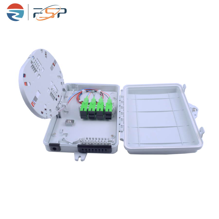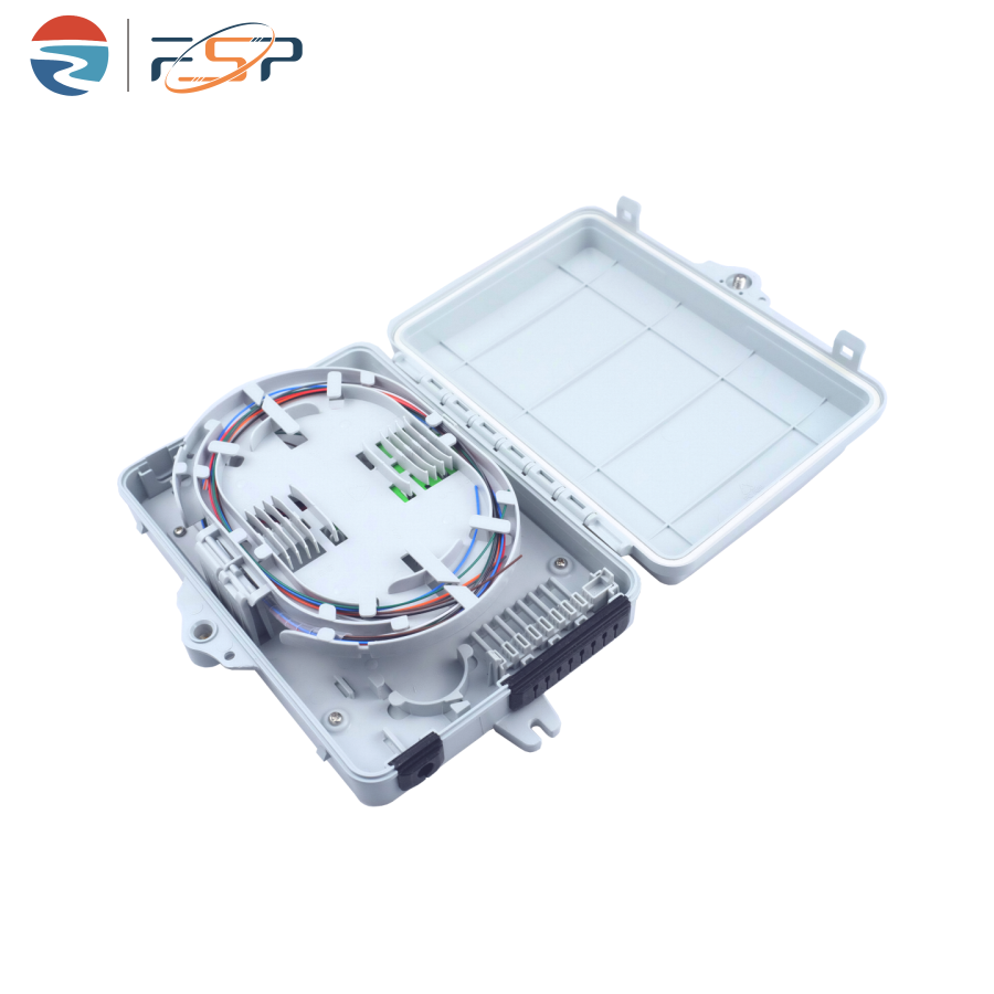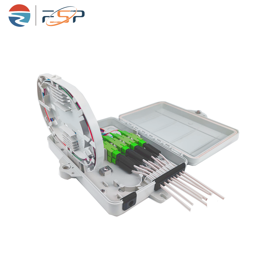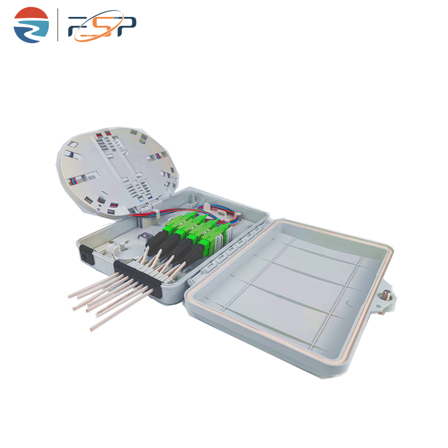 FSP-P-08-C Fiber Distribution Box is used as a termination point for the feeder cable to connect with drop cable in FTTx communication network system. The fiber splicing, splitting, and distribution can be done in this box, and meanwhile it provides solid protection and management for the FTTx network building.