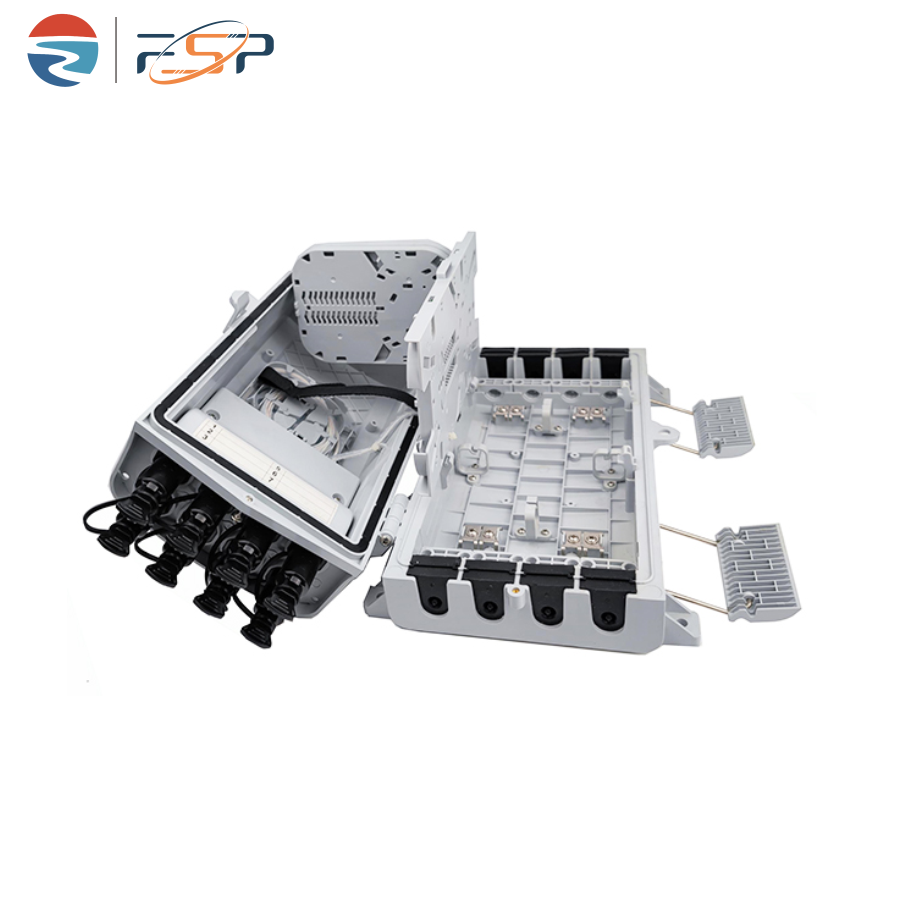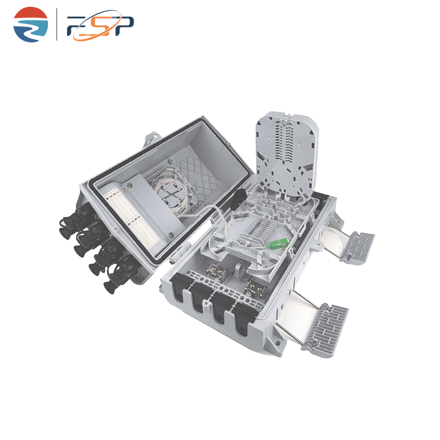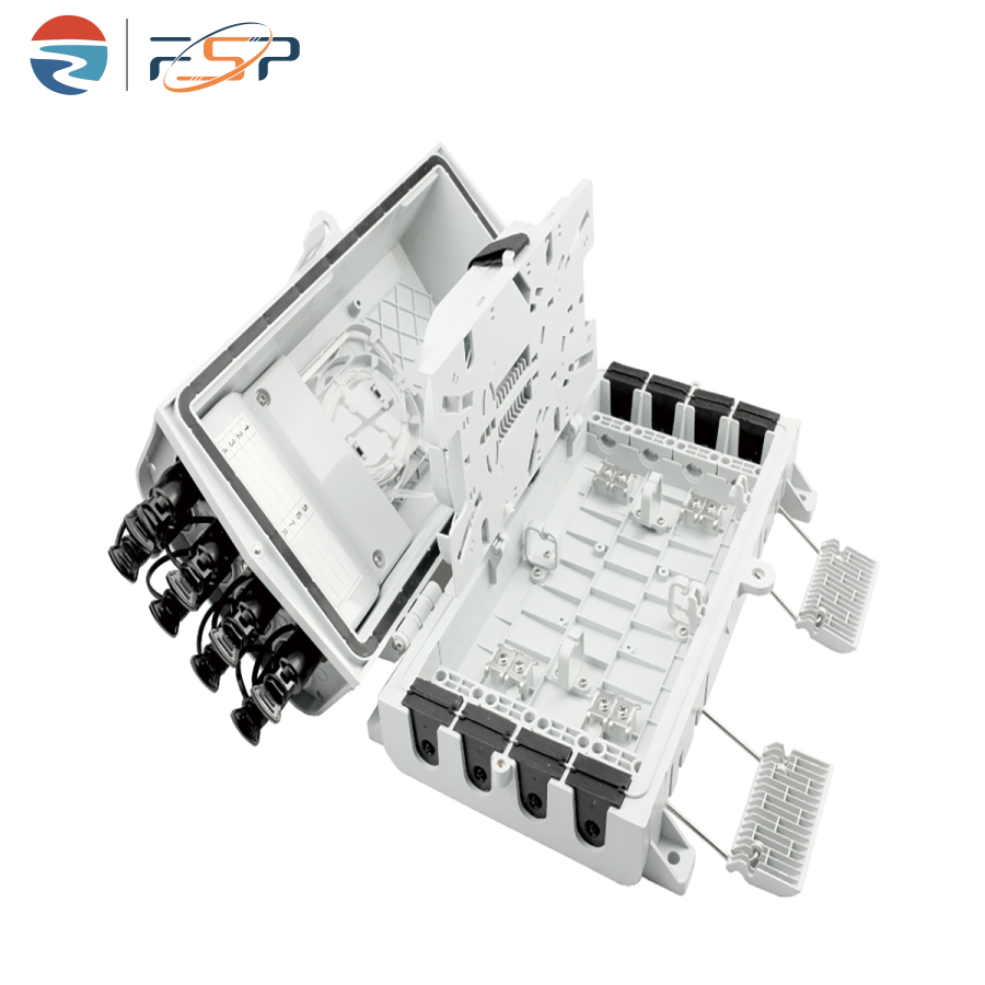FSP-P-08-E Fiber Distribution Box is used as a termination point for the feeder cable to connect with drop cable in FTTx communication network system. The fiber splicing, splitting, and distribution can be done in this box, and meanwhile it provides solid protection and management for the FTTx network building.