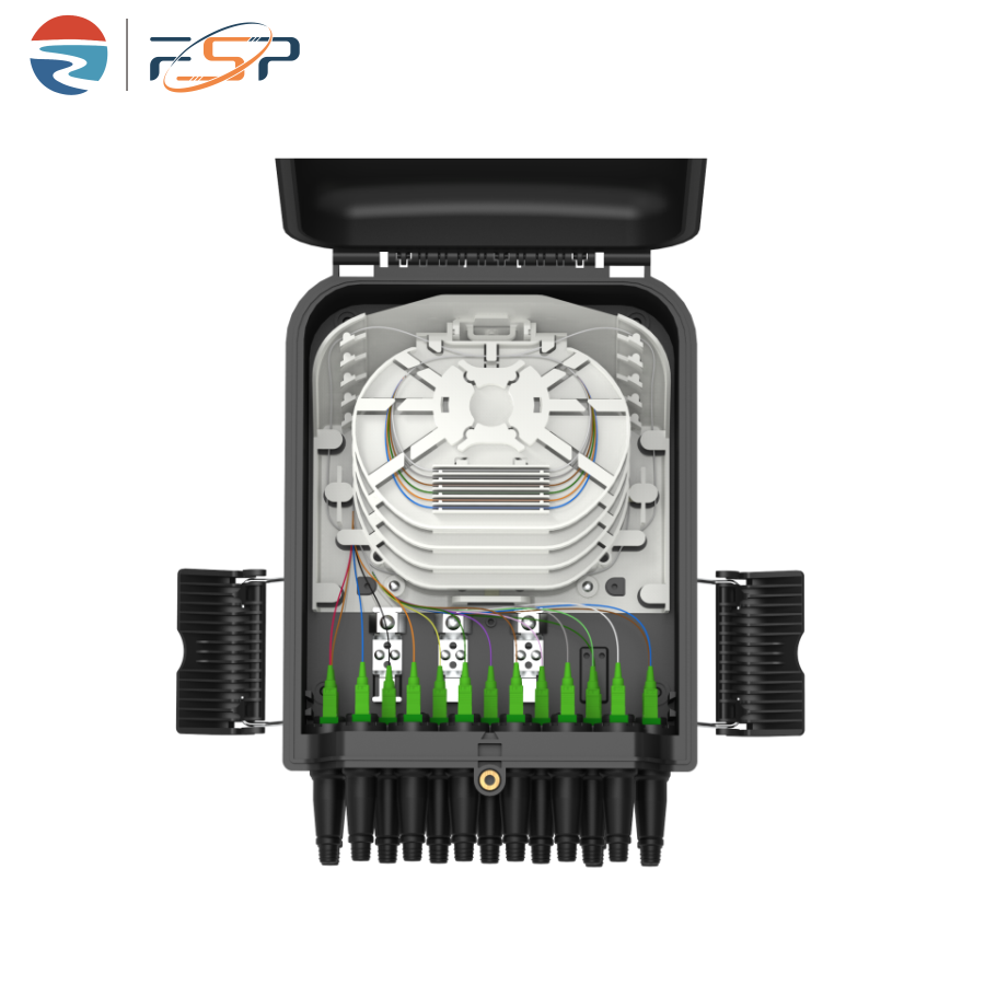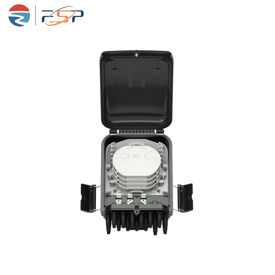 FSP-P-08-J Fiber Distribution Box is used as a termination point for the feeder cable to connect with drop cable in FTTx communication network system. The fiber splicing, splitting, and distribution can be done in this box, and meanwhile it provides solid protection and management for the FTTx network building.