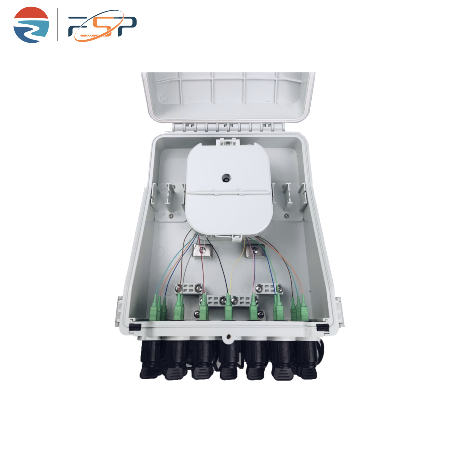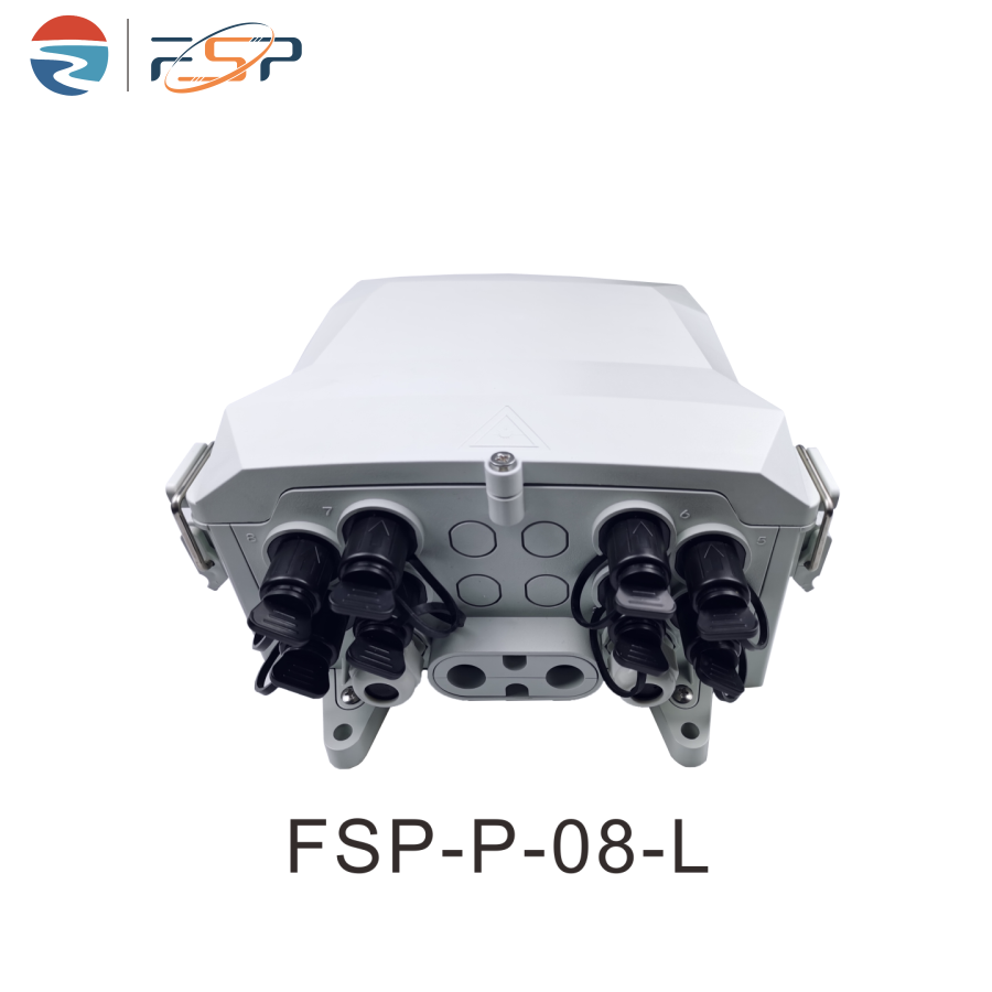 FSP-P-08-L Fiber Distribution Box is used as a termination point for the feeder cable to connect with drop cable in FTTx communication network system. The fiber splicing, splitting, and distribution can be done in this box, and meanwhile it provides solid protection and management for the FTTx network building.