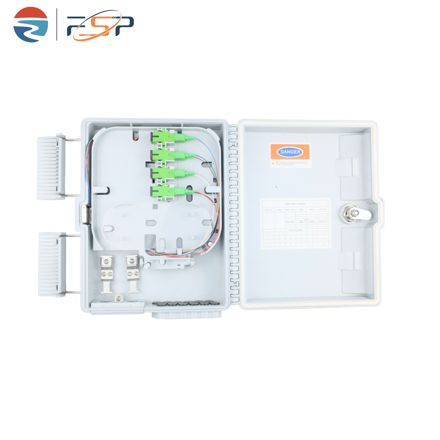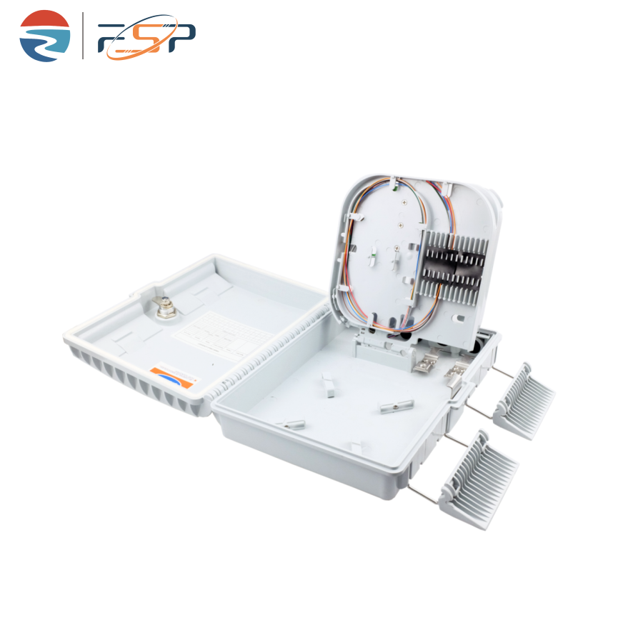 FSP-P-12-B Fiber Distribution Box is used as a termination point for the feeder cable to connect with drop cable in FTTx communication network system. The fiber splicing, splitting, and distribution can be done in this box, and meanwhile it provides solid protection and management for the FTTx network building.