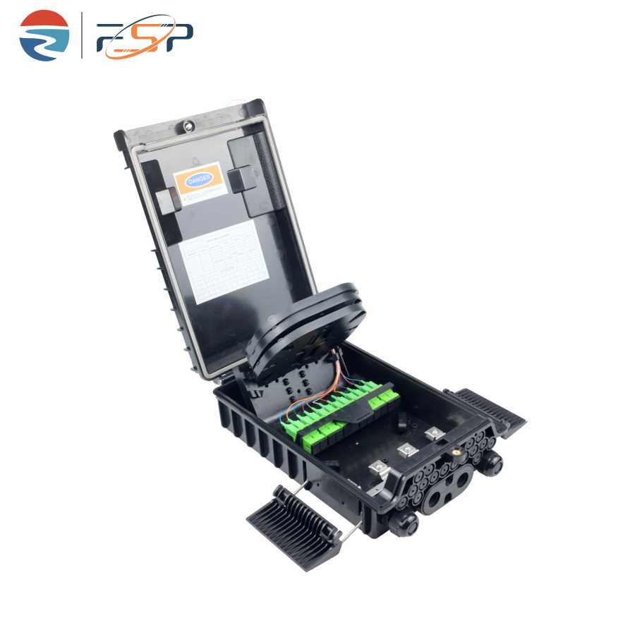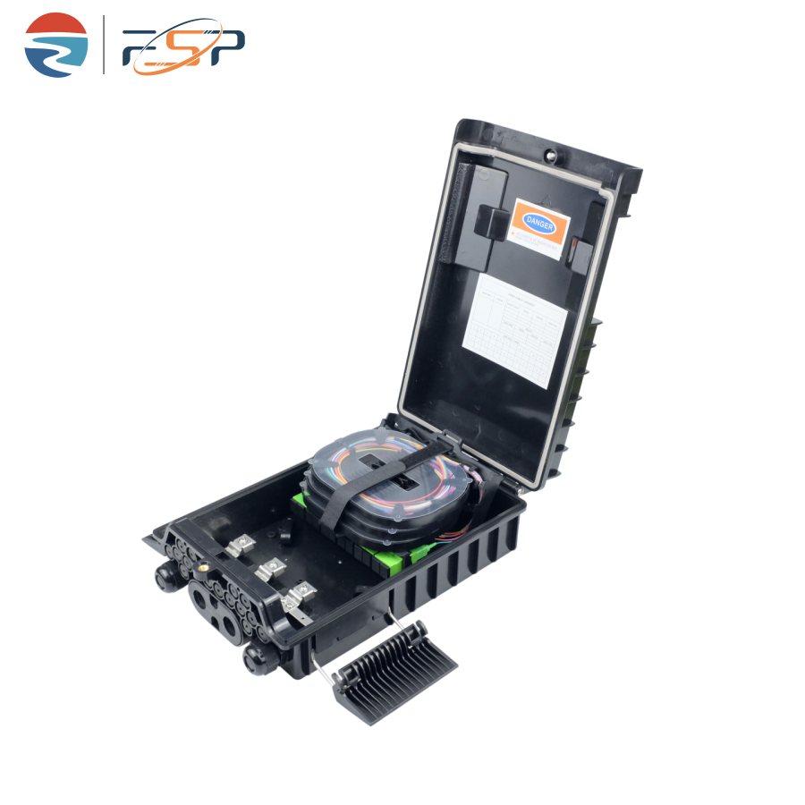 FSP-P-12-C Fiber Distribution Box is used as a termination point for the feeder cable to connect with drop cable in FTTx communication network system. The fiber splicing, splitting, and distribution can be done in this box, and meanwhile it provides solid protection and management for the FTTx network building.