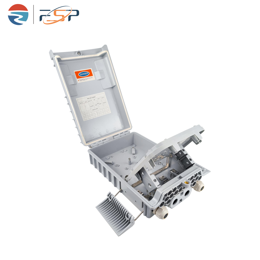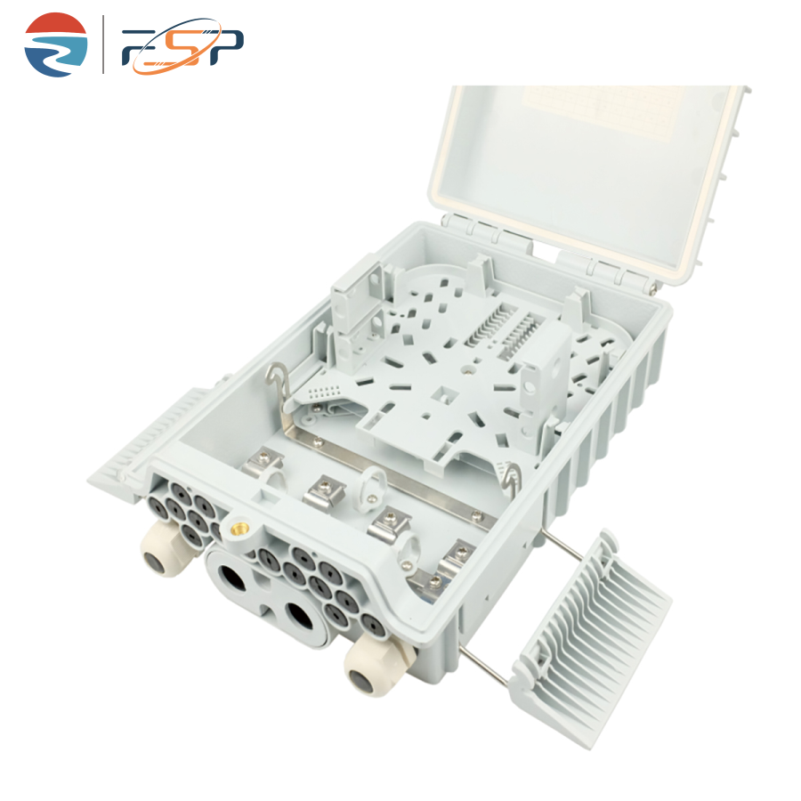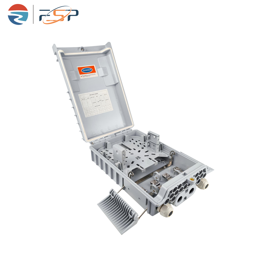 FSP-P-16-D Fiber Distribution Box is used as a termination point for the feeder cable to connect with drop cable in FTTx communication network system. The fiber splicing, splitting, and distribution can be done in this box, and meanwhile it provides solid protection and management for the FTTx network building.