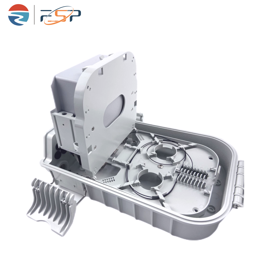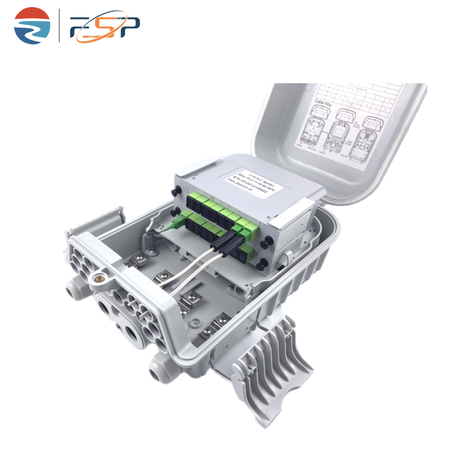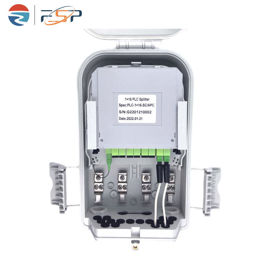 FSP-P-16-Q Fiber Distribution Box is used as a termination point for the feeder cable to connect with drop cable in FTTx communication network system. The fiber splicing, splitting, and distribution can be done in this box, and meanwhile it provides solid protection and management for the FTTx network building.